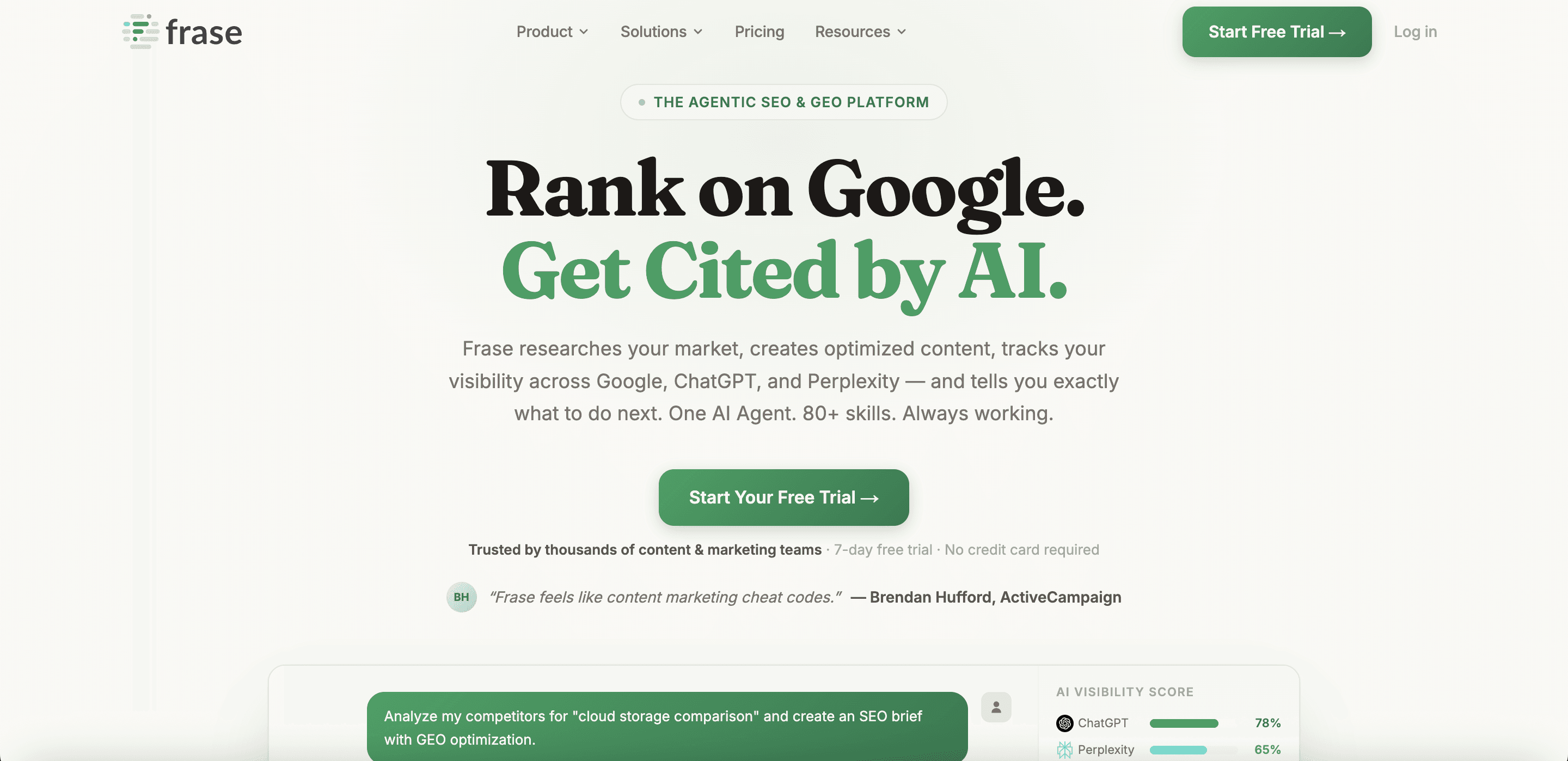 #11 - Frase.ioThe Content Brief Builder That SEO Writers Love 🎯 Best For: SEO writers, content managers, bloggers who start every article with a brief 💰 Pricing: Solo: $15/month; Basic: $45/month; Team: $115/month; Pro Add-on: +$35/month Pros: