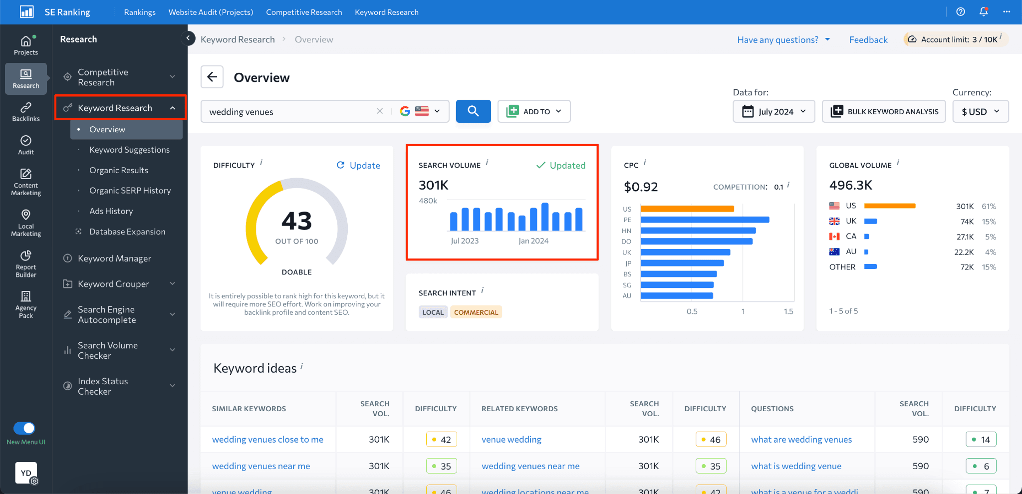 Best Used For: Discovering long-tail keyword variations and understanding search volume for content planning.